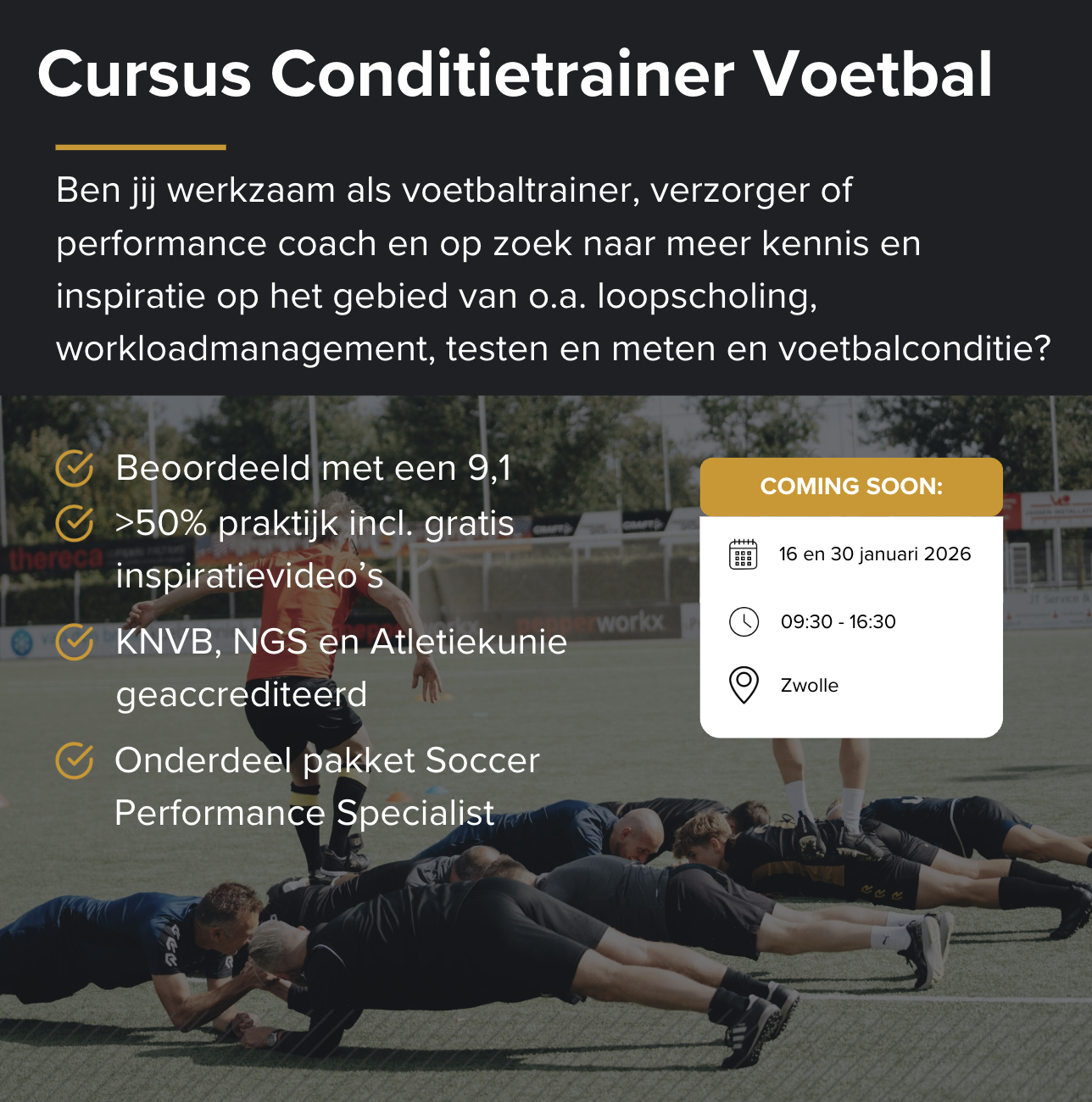 De 2 daagse KNVB en NGS geaccrediteerde cursus Conditietrainer Voetbal 2) richt zich o.a. op (jeugd)trainers, verzorgers, (sport)masseurs en (toekomstige) performance coaches die op zoek zijn naar verdiepende kennis, inspiratie en praktische tips om hun team en/of individuele speler op een leuke manier “voetbalfit” te krijgen en houden.